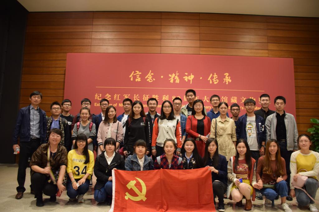 “红军不怕远征难,万水千山只等闲”。80年前,中国工农红军历时一年时间,穿行十一个省份,行程二万五千里,完成了艰难卓绝、震惊世界的长征,不仅为中国革命的胜利前进奠定了坚实基础,也为后世之中国留下了宝贵的精神财富。2016年9月29日,det365官方网站登录2016级硕士生36名党员在det365官方网站登录党委组织员刘滨、政治经学系何召鹏两位老师的带领下,赴国家博物馆参观了“信念•精神•传承——纪念红军长征胜利80周年大型馆藏文物展”,缅怀先辈英绩,传承长征精神,激发青年党员奋发图强之激昂斗志。