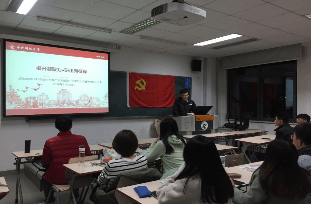 2018年11月20日,det365官方网站登录2018级硕士生第三党支部在det365在线平台沙河校区3号楼219召开了题为“提升凝聚力 研出新征程”的第一次党员大会。会议流程主要分为三项,第一项是关于甘俐俐、张意苓、高倩三位预备党员转为正式党员的转正大会。第二项是支部书记王继彬带领大家学习“全面从严治党”、“榜样3”等优秀视频。第三项是由我们学院2017级硕士生第二党支部书记吴凯学长给大家分享研究生阶段的学习和生活经验。