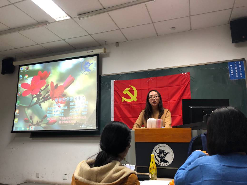 首先党支部书记余文秀向大家讲解支部日常党务工作。余文秀同志介绍了组织生活会、月度学习、年度民主评议等事项,并希望每名党员能够深刻理解参与组织生活这一基本义务,贯彻落实党的精神。随后,会议就党员E先锋、学生党员先锋工程等专项工作进行梳理,要求同学们按要求开展相关工作。