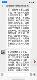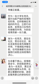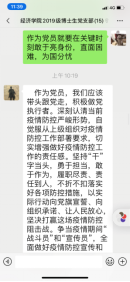 师生支部党员以网络为媒介,学习习近平总书记对疫情的重要讲话和相关文件,观看李文亮、钟南山、金银潭医院院长等优秀共产党员事迹。习近平总书记时刻关注疫情形势,亲自指挥、亲自部署,并主持召开局会议,研究新冠肺炎疫情防控工作;李文亮作为此次疫情的吹哨人,提醒了公众可能发生的疫情;钟南山院士不惜生命做逆行者,忘我抗击疫情;金银潭医院院长张定宇,身患渐冻症,拖着一双跛脚,连续30天奔走在抗疫第一线;温堡乡前进村83岁高龄的老党员柳占春,坚守抗疫一线……支部党员纷纷表示,共产党员先锋敢担当、勇作为的精神是我们学习的表率!
