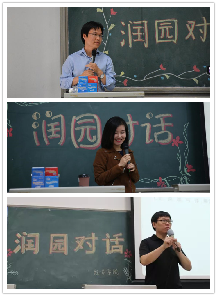 “润”字取滋润,润泽之意。“润泽”于高校人才培养而言,意味着理想信念的浸润,道德品质的示范;意味着专业素养的引领,学术底蕴的滋养;意味着创新精神的培育,意味着人文素养的关怀。经济学家梦工场开展“润园对话”活动,期待青年学者与青年学子就“做人做事”“学习学术”等不同主题进行的递进式探讨,以师生间思想的碰撞、学术的共享、情感的流动以及行动的支撑,激发教师育人的“内生动力”,实现专业教育和德育工作相融互促。本学期,“润园对话”邀请青年教师黄乃静、张川川、徐翔开展主题为“博士屯(波士顿)流浪记,出国留学那几年”、“幸福,爱情与XX梦”、“浅析英语学习与写作之路”的3期对话交流。“润园对话”是“道”与“术”的融合,青年学者们将立足长远的理想培育与着眼当下的知识传授相结合,阐释自己对科学精神、人文情怀、社会责任的理解,与学生思想碰撞,进行生命与生命的对话。
