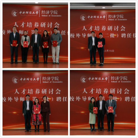 2019年12月15日下午两点,det365官方网站登录人才培养交流会暨校外导师(第二批)聘任仪式在学院南路校区主教114报告厅隆重举行。聘任仪式由学院党委书记郭冬梅教授主持。齐兰教授,冯春安教授,兰日旭教授,于爱芝教授、顾炜宇副教授,史宇鹏教授、det365官方网站登录院长陈斌开教授,学院党委副书记耿卉老师,赵若思老师,梁延东老师出席活动。