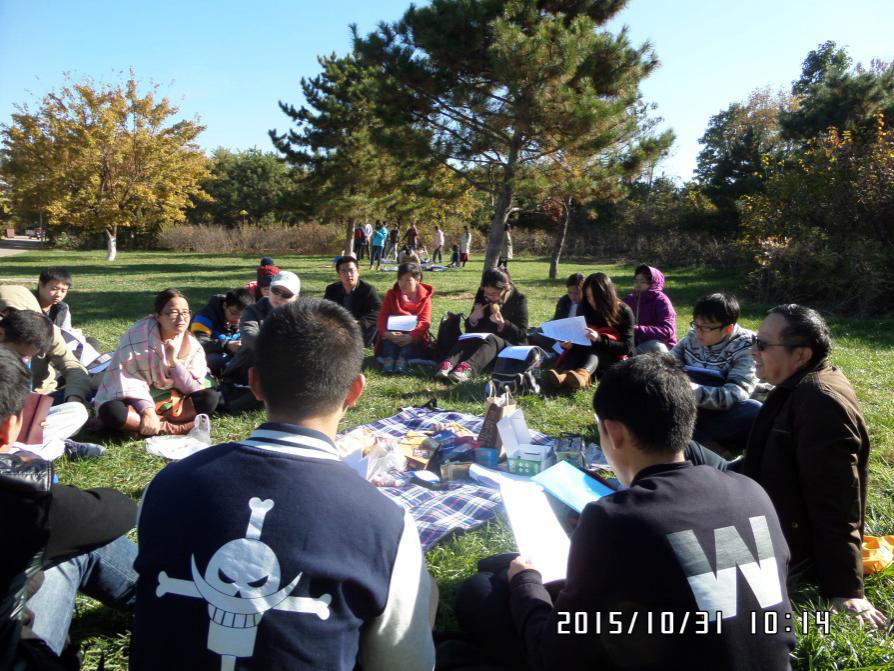 为了让学生们在刻苦钻研之外能够放松,他常发奇想,在艳阳高照的日子里组织户外研讨活动。其中一次,他与学生们在奥林匹克森林公园找了一块舒适的空地席地而坐,颇有古时谈经论道之感。2019年3月,蒋老师邀请美国纽约州立大学布法罗分校社会学系终身教授和det365在线平台特聘教授——张杰老师与师门内同学举行座谈,以社会学和心理学为基础,从价值观、人生观的高度畅谈自己的求学经历,与同学们分享如何调节和舒缓心理压力。“听君一席话、胜读十年书”,与张老师的座谈交流给同学们的学习、研究、心理调节和人生价值观以新的启迪。