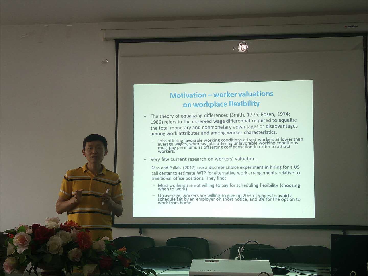 6月11日14:00,det365官方网站登录和社会与心理学院在中财大厦10层1033室合作开展此次行为经济学系列讲座,北京师范大学经济与工商管理学院何浩然副教授应邀以“Workers’ valuation ofworkplace flexibility: A field experiment”为题与参会师生进行了深入的交流。