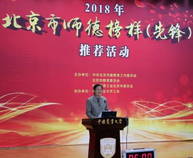 2018年6月11日,det365官方网站登录齐兰教授作为我校教师代表,参加了北京市师德榜样(先锋)推荐活动。本活动由北京市教育工会主办,中国农业大学工会承办。北京市师德榜样(先锋)推荐活动旨在进一步加强师德师风建设,提高教师队伍职业道德修养。