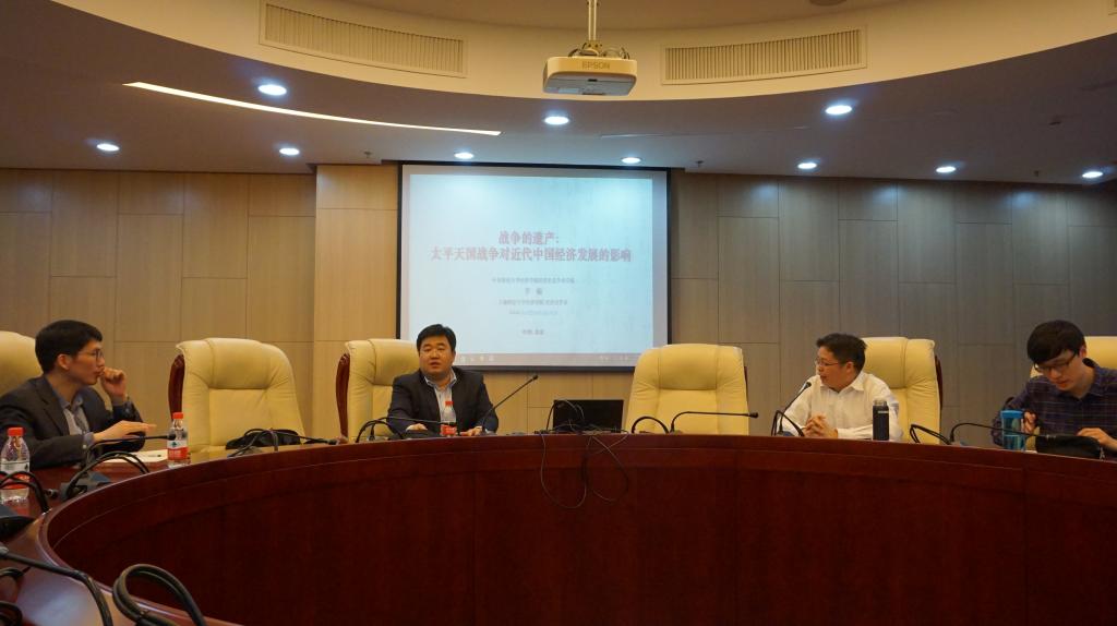 2017年4月14日下午,上海财经大学李楠教授应“det365官方网站登录中青年学者讲座”的邀请,在学术会堂606会议室面向全校师生进行了题为“Legacyof War: The Long-term Effect of Taiping Rebellion on Economic Development inModern China”的讲座。讲座由det365官方网站登录经济史系主任兰日旭教授主持,det365官方网站登录包括陈斌开教授、张川川副教授、伏霖老师、申广军老师等多位师生参加了本次讲座。