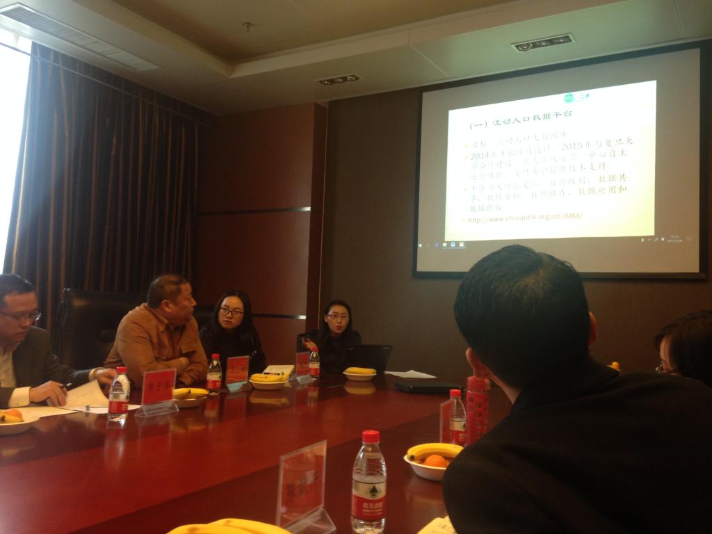 3月29日下午,国家卫生计生委流动人口服务中心肖子华主任和办公室副主任马长啸、健康服务部项目负责人王永进、信息处负责人陈晶和办公室干部林颖在学术会堂602与我校部分学院老师进行交流,会议由det365官方网站登录副院长陈斌开主持。