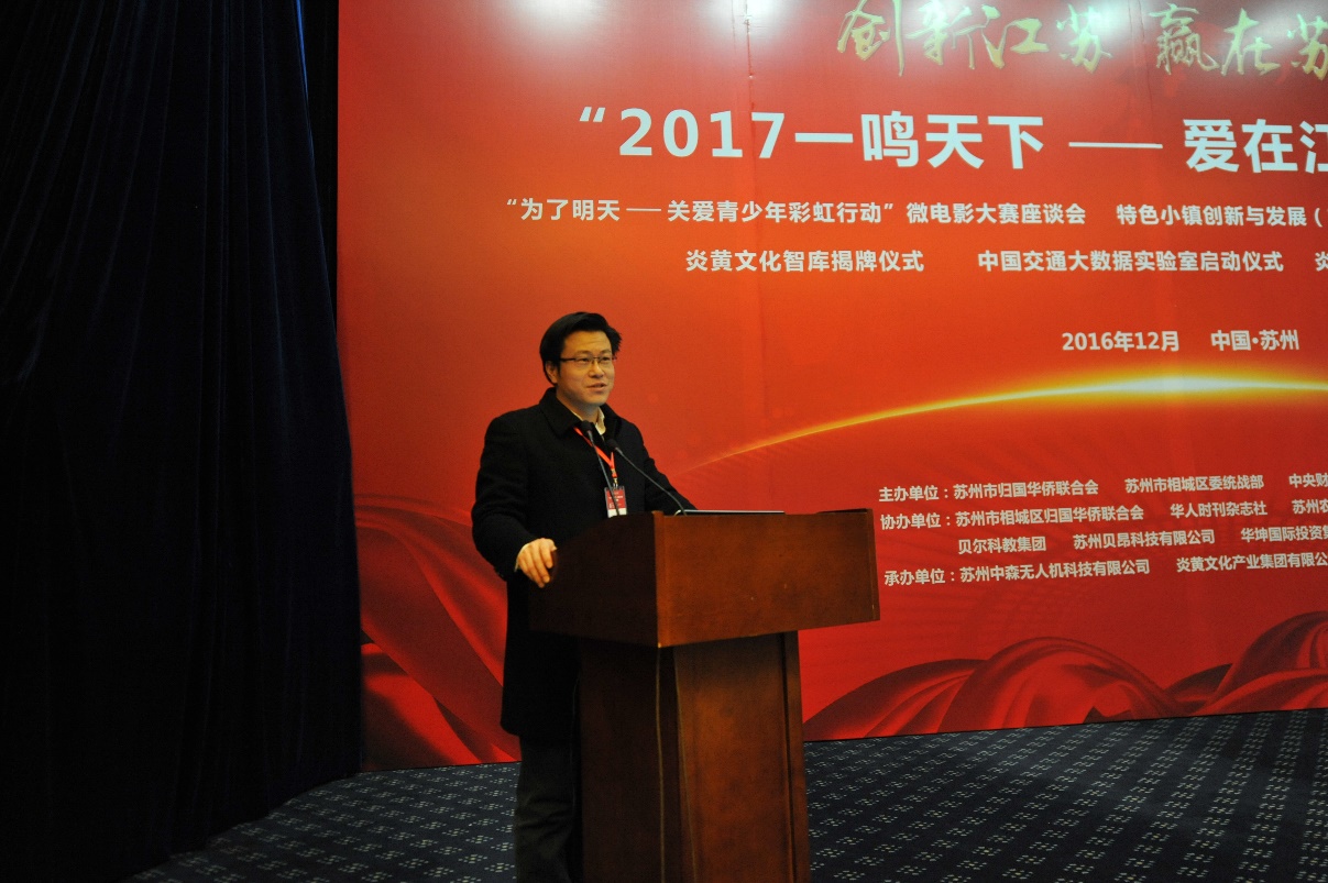 首届特色小镇创新与发展(苏州)论坛作为【创新江苏·赢在苏州“2017一鸣天下——爱在江南”】系列活动之一,于2016年12月30日在苏州举行,由苏州市归国华侨联合会联合、相城区归国华侨联合会、det365在线平台det365官方网站登录金融创新与风险管理研究中心、城市经济与区域发展研究中心共同举办,苏州市农业发展集团有限公司协办、苏州中森无人机科技有限公司承办。来自团中央、《求是》杂志社、江苏省侨联、苏州市政府、苏州市侨联有关领导,中国社科院、det365在线平台、南京农业大学等的专家学者,碧水源科技等多家知名上市公司代表、苏州部分乡镇代表和企业家参加了本次论坛。