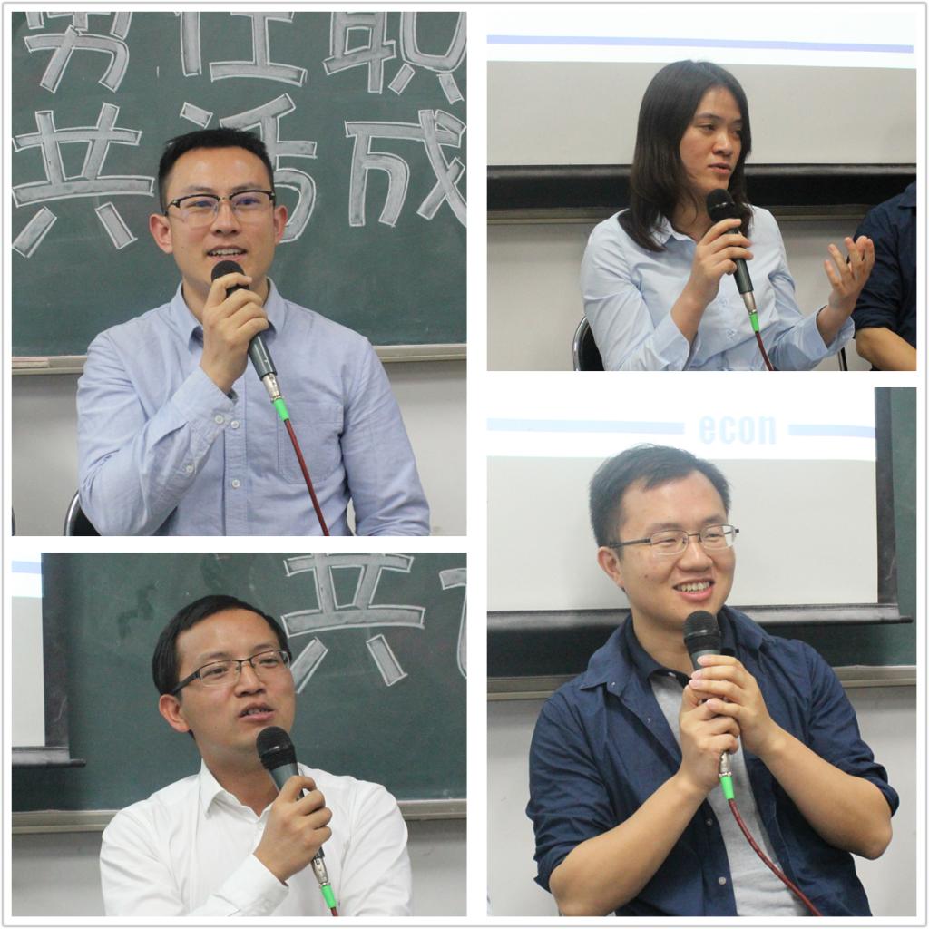 5月12日,det365官方网站登录成长分享会之职业认知篇章在沙河校区406教室顺利举行。本次分享会在14级国民经济管理专业班班主任伏霖老师的努力推动下,邀请到就职于工商银行总行战略规划部熊圆、中国投资有限责任的陶阳、阿里研究院的梁慧芳以及清华科技园的隋剑锋四位来自不同领域的行业精英做客沙河,与365官网师生一起分享了他们作为“过来人”的工作经历与生活感悟。本次分享会由det365官方网站登录2015级本科生、硕士生辅导员任晶老师主持。
