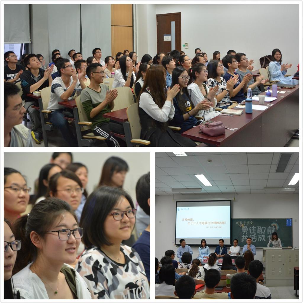 同学们还就出国深造的优劣势、女性就职金融行业工作的利弊等内容与嘉宾进行了深入交流,四位嘉宾一一解答,以现实经历为素材,生动而深入地进行了解答,引发了现场的阵阵掌声。