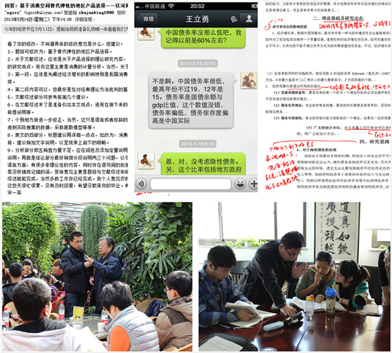 从搜集来的素材中我们欣慰地发现,两校区的舟车劳顿、辛勤忙碌丝毫没有减弱学院教师乐学好教的热情和严谨治学的态度。在“爱的痕迹”中,有年逾80岁、仍不舍昼夜耕耘在教学科研第一线的侯荣华老师;声带息肉导致嗓音沙哑、汗衫浸湿却始终面带“杨式”微笑活跃在本科生课堂上的杨运杰老师;有刚做过手术没好好休息就重返课堂上课的李淑湘老师;有放弃周末休息依然逐字逐句修改论文并通过微信和学生反复探讨“中国债务率”的王立勇老师;有满身粉笔尘土仍字句工整地用粉笔演绎着宏观经济模型奥妙的严成樑老师;有“没有出众的外貌,也没有华丽的衣着”,却能用渊博的学识循循善诱、博人以文,用丰富的阅历发蒙解惑、约人以礼的兰日旭老师……老师们课上课下、台前幕后、不计得失的辛勤付出,以笃学尚行、止于至善的教学态度,用尽毕身所学为莘莘学子开启了知识的殿堂。