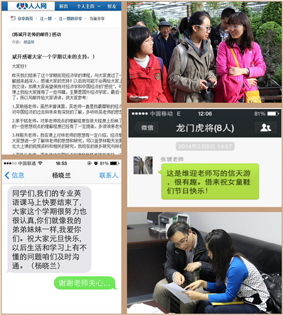 师爱如山,厚重坚定;师爱如海,浩瀚深沉;师爱如雨,润泽无隙。校园里每一处、每一刻都在上演着春风化雨般的det365官方网站登录师生情:赵丽芬副校长在繁忙工作中还对学生的论文进行逐字逐句的修改,“一次次温和的笑容、暖心的话语、谆谆的教诲都化作我脑中的智慧,胸中的热血,行为的规范”;齐兰老师时时牵挂学生,在去英国参加学术研讨会忙碌的途中,也不忘给学生送上新年祝福;总是嘱咐学生“多喝水”“别着凉”、出差也不忘给“孩子们”带点心的韩金华老师,让学生感觉在北京有了亲人,不再感到孤单;博学儒雅的金哲松老师也会在酷暑中为新生扛行李、灯下为学生修改论文;精心设置授课内容、神神秘秘拿出一个长筒袜,为回答问题学生送上圣诞节礼物的戴宏伟老师;“经济学是个很好玩的东西,会越想越有意思,要重点把握的是经济学的思想”,乐在经济学中的李彬老师感染着每一名学生;而如母亲般亲切的刘滨老师总是全身心解决学生成长道路中遇到的每一个困惑……他们爱如母、严如父,严慈相济,倾心育人,用温暖如春的关爱给予了学生奋发向上的力量。