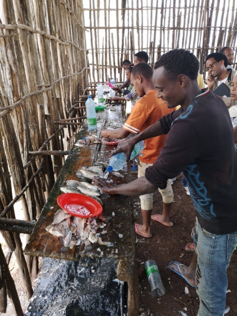 在埃塞俄比亚两周的实地调研中,工作小组与包括政府、科研机构、生产协会、农户等利益相关方密集地座谈,并对南部和北部渔业主产区的生产、加工和流通进行实地考察。工作小组了解了项目实施基础和制约因素,以期为后续的项目设计和实施提供依据。于爱芝教授说,开始调研走访最强烈感受是东非高原广袤的土地、丰沛的降水形成的较好的农业生产条件和落后的生产方式、低下的农业生产效率间的巨大的反差,以及书本课堂上各种理论对解决非洲的贫穷和落后问题的乏力。随着调研的深入和可行性研究的逐步推进,对试点项目的定位、发展目标、支持形式和具体的活动安排逐渐清晰,又心生一种自豪感,即将自身的知识转变为经验,并将其变成发展中国家的实际增长所表现出的价值的自豪感。正如她的工作日志所写:“在非洲的工作经历,加深了我对农业经济学作为应用经济学学科之一的理解……"