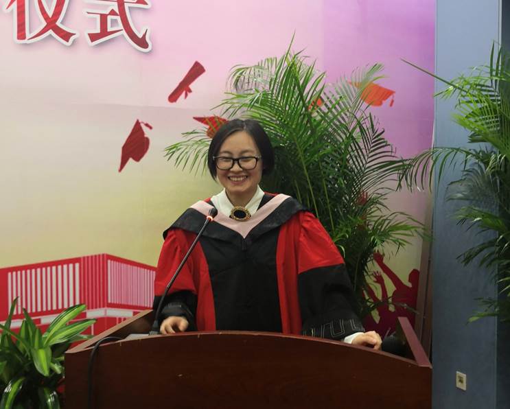 教师代表致辞环节中,赵丽芬教授首先祝贺毕业生们,读书学习是艰辛的过程,同学们经历多年时光后系统掌握了知识的同时拓宽了自己的视野,同时对培养这些学生的家长和老师们致以崇高的敬意;其次感谢老师们对教师职业的执着与热爱、“2+5”、“白+黑”的付出,并且感谢同学们对老师的理解与爱;最后祝福同学们,希望同学们牢记“勤奋、执着、担当、诚信”8个字,“勤恳做事、踏实做人”,处理好“工作与生活、事业与家庭、拼搏与健康”的平衡,祝福毕业生家人们身体健康、生活幸福。青年教师代表徐翔副教授致辞中,以“记忆”为主题寄语毕业生,回忆自己当年的博士毕业典礼,表示十分理解毕业生们对未来的期待、对身份转换的迷惘、对同学情谊的不舍;随后追忆det365官方网站登录的发展历史,从经济系到det365官方网站登录发展壮大的心路历程;以及追溯经济学的发展之路,号召毕业生们作为经济学科的传人,在汲取专业知识和老师们的人生经验后,应秉承“经世济民”的精神,为国家和社会做出贡献。
