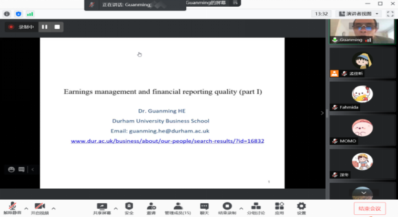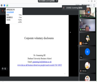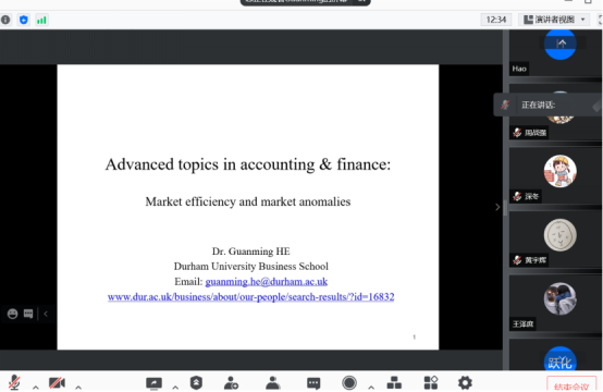 2021年9月20日至28日,英国杜伦(Durham)大学商学院何冠明副教授应det365在线平台det365官方网站登录邀请,使用腾讯会议APP讲授行为金融专题研究短期课程。det365官方网站登录部分师生参加了此次课程。