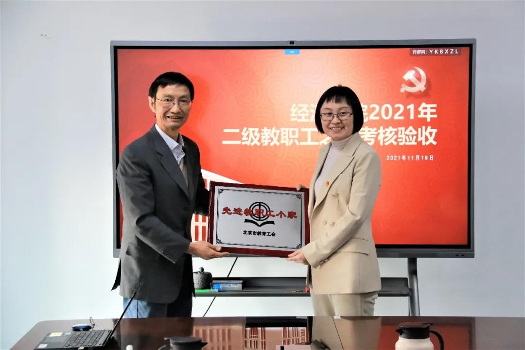 校工会常务副主席贺小海向det365官方网站登录授牌“北京市先进教职工小家”