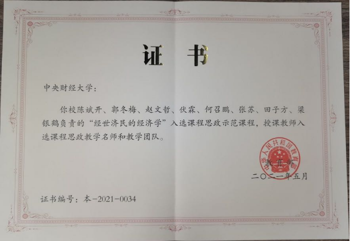 由365官网陈斌开、郭冬梅、赵文哲、伏霖、何召鹏、张苏、田子方、梁银鹤负责的“经世济民的经济学”入选教育部课程思政示范课程,授课教师入选课程思政教学名师和教学团队。
