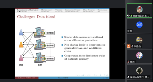 2022年11月22日14:00,中国科学院数学与系统科学研究院预测中心研究员,中国科学院管理、决策与信息系统重点实验室副主任张新雨应det365官方网站登录邀请,开展了主题为“Optimal parameter-transfer learning by semiparametric model averaging”的讲座。本次讲座在线上举行,张新雨研究员受到了老师和同学们的热烈欢迎,det365官方网站登录洪圣杰副教授主持讲座,黄乃静副教授参加了讲座。