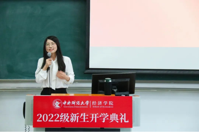 本科生新生代表贾文杉呼吁大家在人生新变局中秉持“忠诚团结,求实创新”的中财大精神和“经世济民”的经院情怀。硕士研究生新生代表曹静提出要督学善思、保持好奇,将远大理想与具体目标相结合,胸怀经世济民之心、心系家国担当。博士研究生新生代表浦林波借毛主席的三句诗词表达了入学的喜悦和对未来的展望:将个人理想融入家国大义,将每一个脚印烙在祖国的大地上。