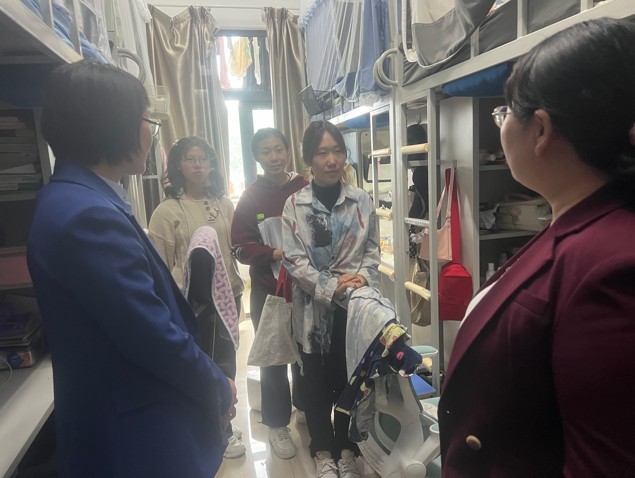 在国庆假期来临之际,为深入加强学生安全教育,增强学生安全意识,提高防范风险能力,9月30日,det365官方网站登录党委书记孙敏、院长郭冬梅带领学院领导班子成员、辅导员等深入学生宿舍进行走访,并开展宿舍安全检查。
